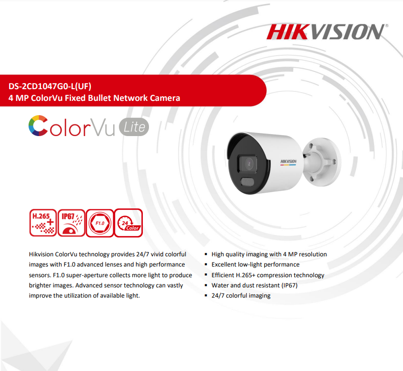 Ürün Adı: Hikvision DS-2CD1047G0-LUF 4Mp 2.8mm IP ColorVu Kamera